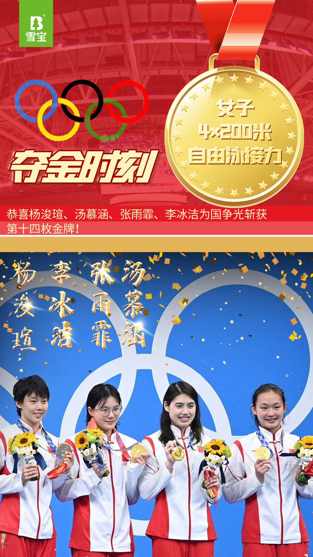 板材十大品牌祝賀中國(guó)代表隊(duì)《楊,u/湯慕涵/張雨霏/李冰潔》獲得2020年?yáng)|京奧運(yùn)會(huì)女子4200自由泳接力冠軍。收獲第十四金!四朵金花,水出芙蓉!中國(guó)加油!...