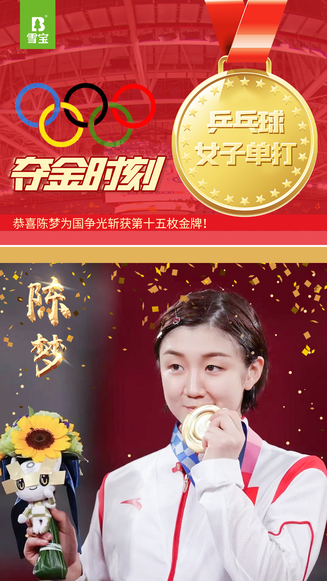 雪寶板材祝賀謝思埸、王宗源獲得2020年奧運(yùn)會(huì)男子3米板冠軍。