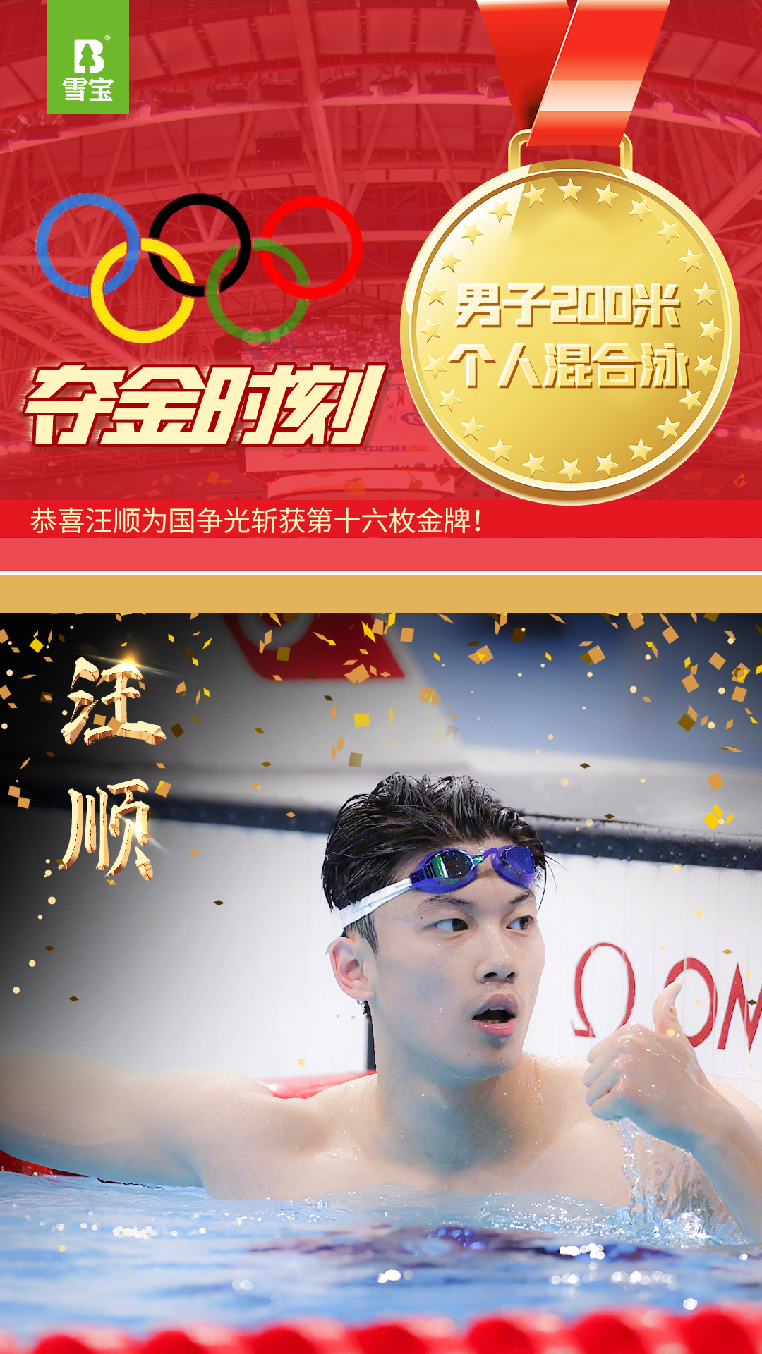 第16金牌,2020東京奧運(yùn)會(huì)汪順200米個(gè)人混合泳冠軍