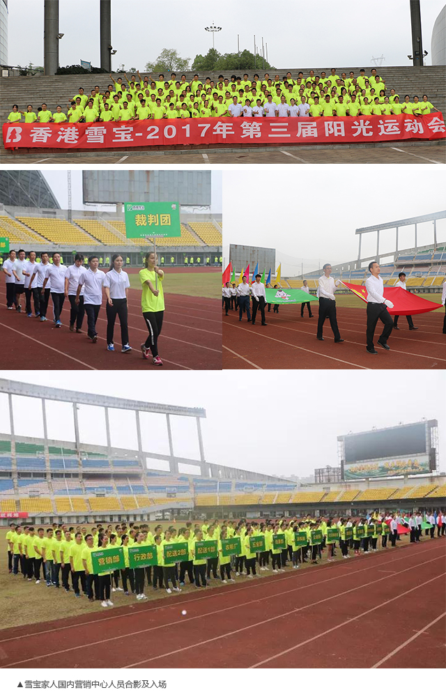 豐富職工體育生活,共建雪寶企業(yè)文化。在振奮人心的運動會入場樂中,雪寶品牌各部門團隊,身著統一的服裝,踏著鏗鏘有力的步伐有序的進入會場,在飄揚的五星紅旗和香港雪寶陽光運動會會旗下,一字排開的隊伍方陣,盡顯風采,每個人都精神抖擻,意氣風發(fā)。