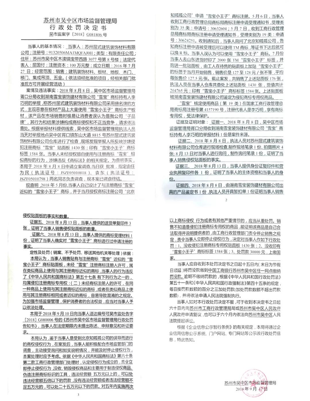 △蘇州市吳中區(qū)市場(chǎng)監(jiān)督管理局出具行政處理決定書(shū)