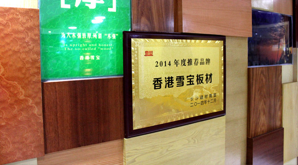 雪寶板材榮獲“2014年度推薦品牌”榮譽稱號