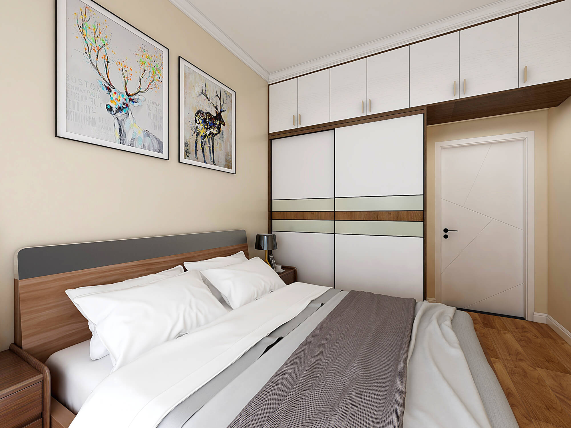 次臥作為父母房使用,老年人經(jīng)歷了幾十年的人生沉淀,性格和喜好往往更偏于成熟穩(wěn)重的格調(diào),所以在顏色搭配上面,選擇稍微偏深色一點!