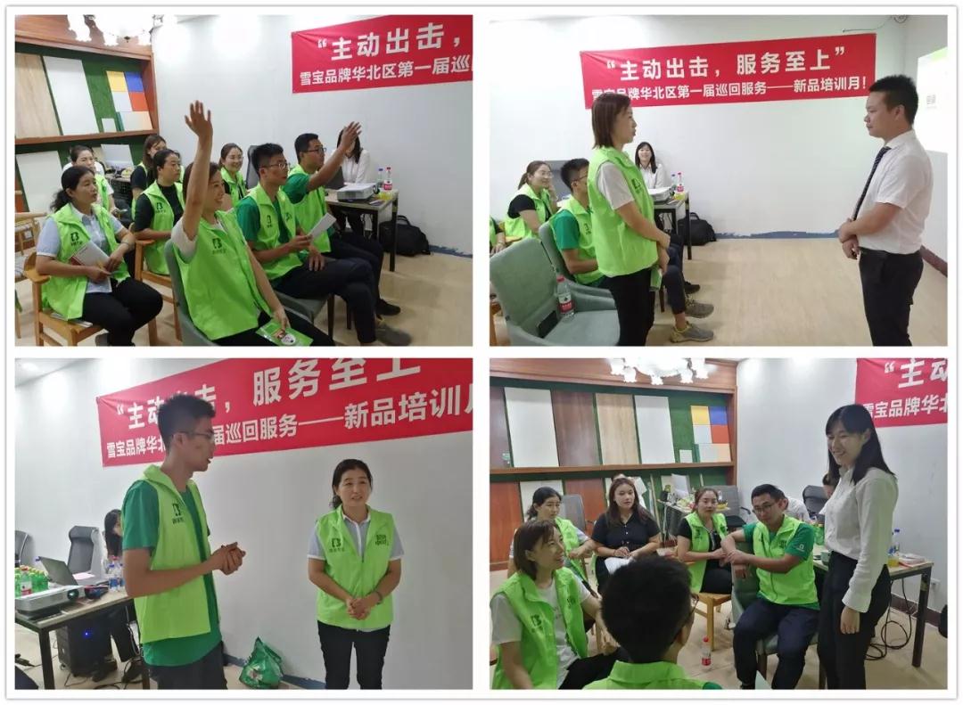 2019年9月8日、9月10日,“主動出擊 服務(wù)至上”雪寶品牌華北區(qū)第一屆巡回服務(wù)——新品培訓(xùn)月活動來到山東德州和山東安丘,雪寶國際集團華北營銷中心聯(lián)合雪寶國際集團培訓(xùn)策劃部攜手當(dāng)?shù)匮⿲毱放茖Yu店開展新品培訓(xùn),深入終端為雪寶家人門授業(yè)解惑,講解品牌核心優(yōu)勢并學(xué)以致用,真正運用到終端運營及品牌市場拓展中去。