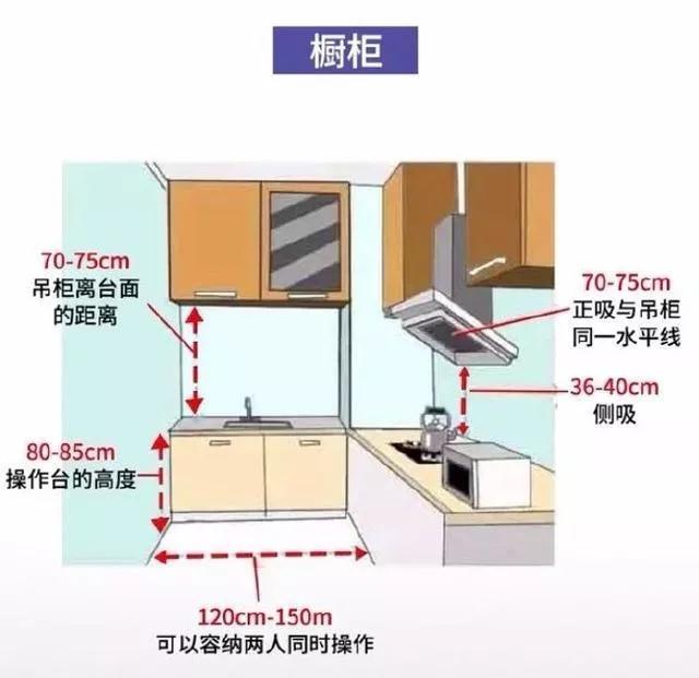 廚房操作臺要按照業(yè)主的身高而定,廚房內(nèi)部至少留出能夠容納2-3人活動的空間。