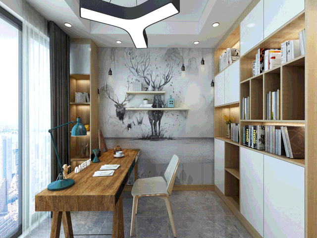 采光優(yōu)良的次臥,墻面簡單的線條,干凈的色調(diào)拼接,讓人舒適又放松,搭配可愛的羊鹿角型椅子,讓整個房間帶有一點童真。頂墻的移門柜,足夠的收納空間讓你雙十一怎么買也足夠收納。