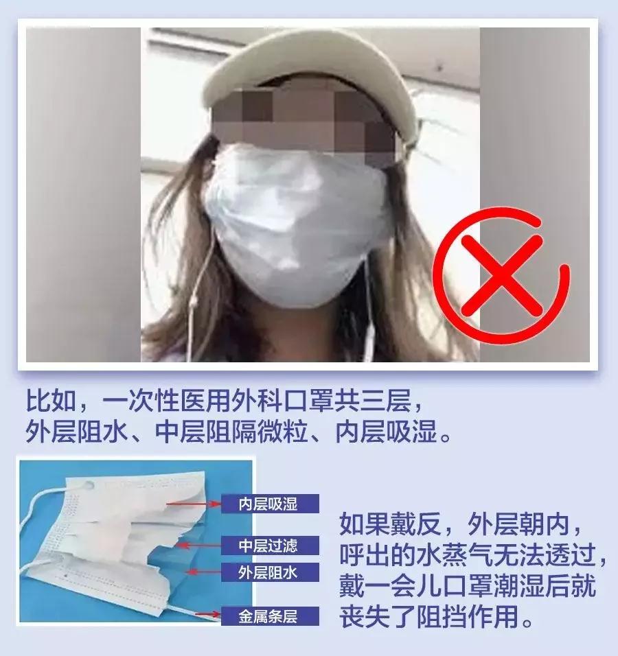 不少人以為口罩白面朝外。其實(shí),這就是典型的戴反口罩。為什么一定要深色朝外,淺色(白色)朝內(nèi)?口罩其實(shí)是多層結(jié)構(gòu),以常見的一次性醫(yī)用外科口罩為例,共三層,外層阻水、中層阻隔微粒,內(nèi)層吸濕。