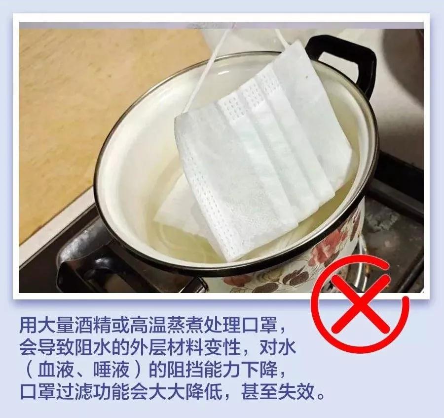 口罩外層也有類似的阻水效果,如果用大量酒精或高溫蒸煮處理口罩,會(huì)導(dǎo)致外層材料變性,對(duì)水(血液、唾液)的阻擋能力下降,口罩的過濾功能會(huì)大大降低,甚至失效。其實(shí),只要不是去過人員密集的公共場(chǎng)所(如醫(yī)院),可以循環(huán)利用的口罩不必消毒。