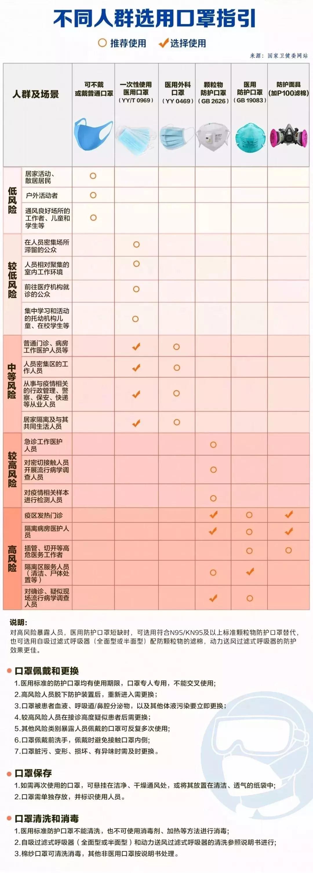 可能很多人會(huì)問,我怎么判斷感染風(fēng)險(xiǎn)是高還是低?別急,就在2月5日國(guó)家衛(wèi)健委等權(quán)威機(jī)構(gòu)聯(lián)合發(fā)布了《口罩選擇與使用技術(shù)指引》,看看下面這張圖,就知道什么時(shí)候該戴,什么時(shí)候可以不戴了。畢竟口罩珍貴,且用且珍惜。