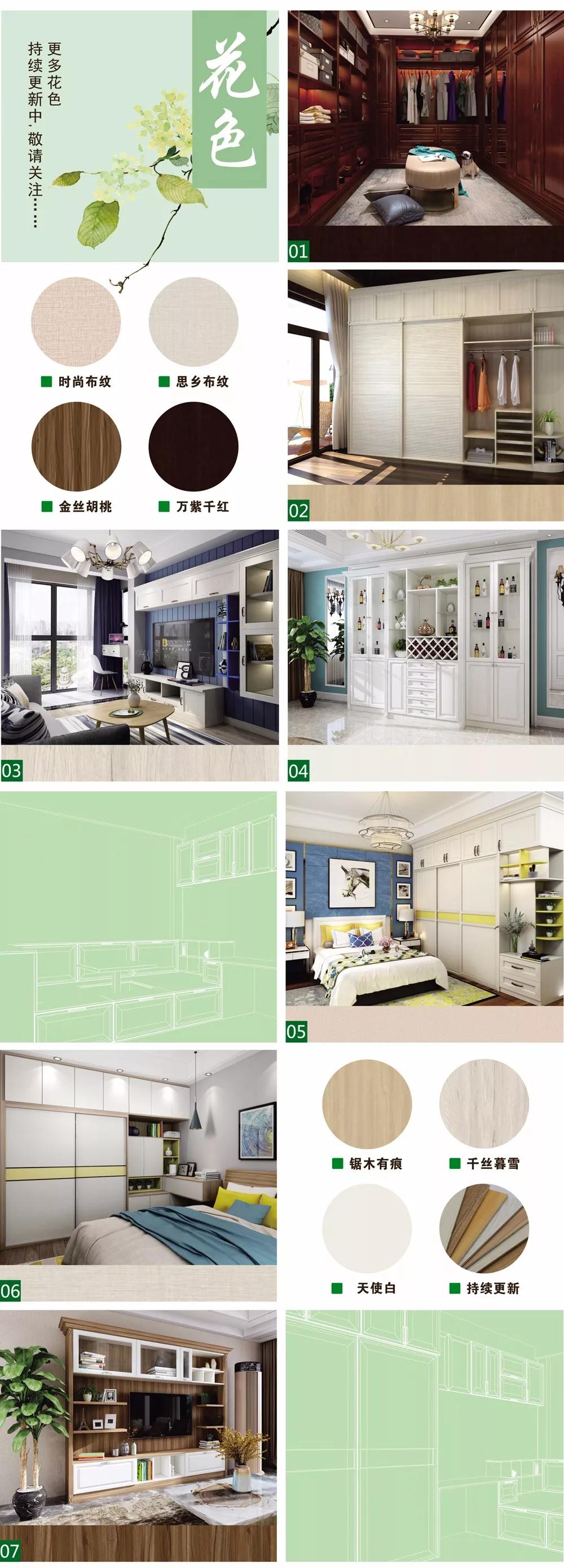 雪寶衣柜板經(jīng)46道工序精制而成,源于意大利米蘭設(shè)計理念,使用德國進(jìn)口高壓晶鉆面紙,采用8倍強(qiáng)化面制作工藝:高耐磨,更抗劃!面紙印刷效果自然、紋理細(xì)膩,耐色勞度達(dá)到7級以上(普通生態(tài)板僅3級),貼面時進(jìn)行了125-128度熱壓540秒的工藝,而普通板熱壓值為:122-125度480秒,3度60秒的差距使得雪寶衣柜板面壓貼效果更穩(wěn)牢,固化更徹底;同時,所有雪寶衣柜板均配套高品質(zhì)同色封邊條、羅馬柱、頂線、移門、平開門等輔材,體驗一屋同色便是如此簡單。