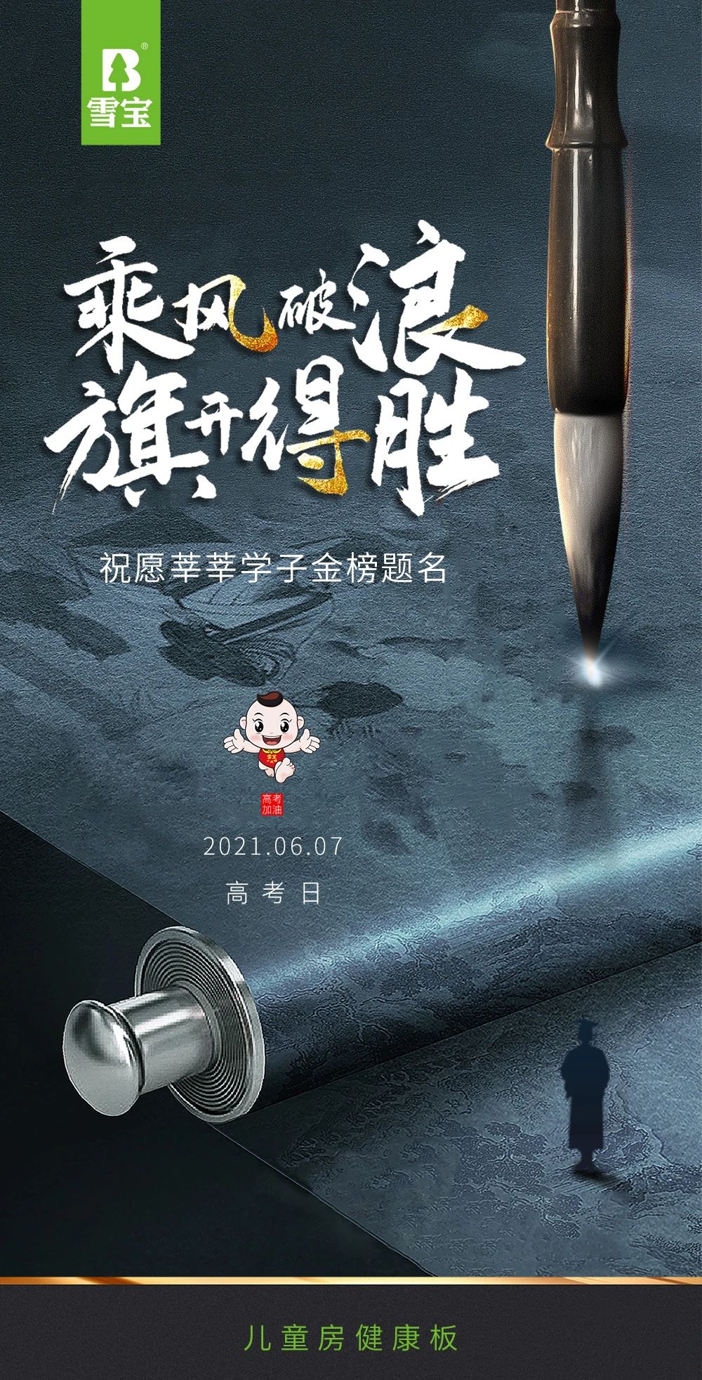 雪寶板材祝莘莘學(xué)子旗開得勝、金榜提名!