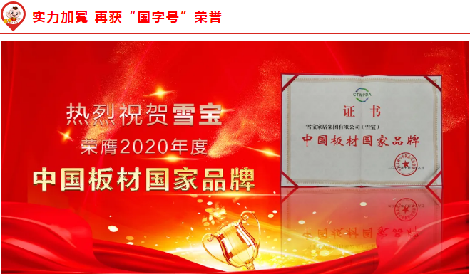 再獲“國(guó)字號(hào)”榮譽(yù)!中國(guó)板材國(guó)家品牌:雪寶!