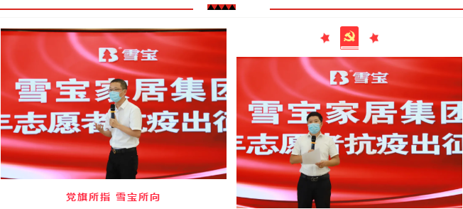 在雪寶抗疫公益愛心活動(dòng)再出征儀式上,雪寶家居集團(tuán)董事長李振先生與集團(tuán)副總經(jīng)理李杰先生致詞,肯定了雪寶人的勇作為敢擔(dān)當(dāng)?shù)木,表示在一線的切身體驗(yàn)讓我們每個(gè)人對(duì)抗疫有更為清晰的認(rèn)識(shí),也深刻領(lǐng)會(huì)到歲月靜好不過是有著許許多多奮不顧身的人在負(fù)重前行,在執(zhí)著堅(jiān)守,在堅(jiān)強(qiáng)守護(hù)!