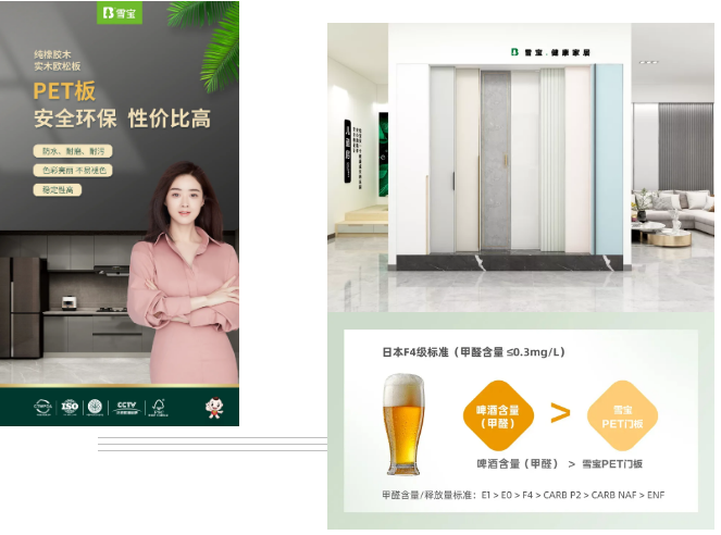 雪寶PET門板還可以很好的解決“年老色衰”問(wèn)題,其優(yōu)異的物理性能、化學(xué)性能,保證了長(zhǎng)時(shí)間使用也不會(huì)出現(xiàn)像泛黃、出油等情況,讓家具經(jīng)得起歲月考驗(yàn),歷久彌新。