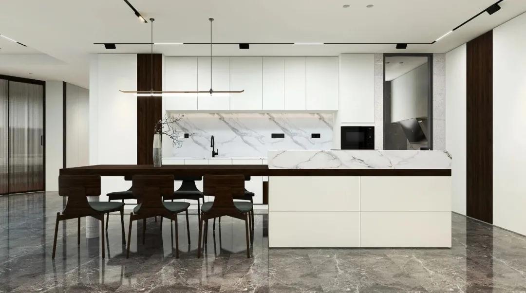 除了衣柜門板,雪寶PET門板還可用于櫥柜柜門、裝飾墻板等。尤其是用于廚房這樣的小空間時(shí),高光板的鏡面效果不僅在視覺(jué)上能起到擴(kuò)展空間的作用,而且也非常便于日常油污清潔。