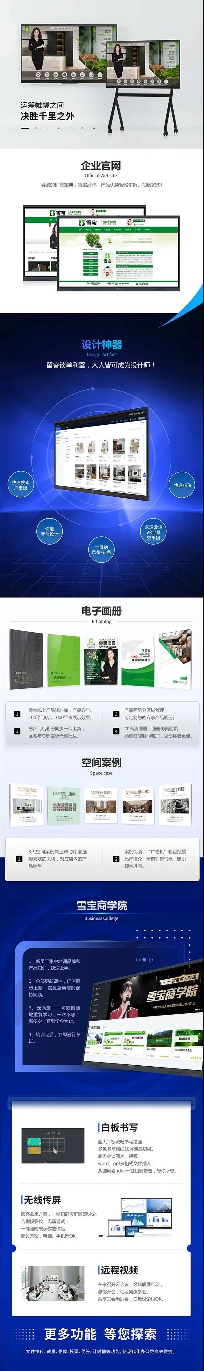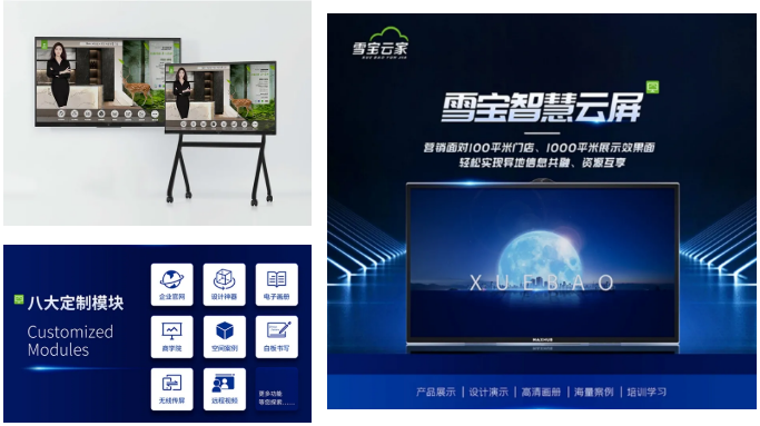 雪寶智慧云屏是一款集企業(yè)展示、設(shè)計下單、內(nèi)訓(xùn)學(xué)習(xí)、遠(yuǎn)程互通等多功能于一體的高清智能多媒體一體機(jī),有助于門店多維智能展示,打通總部與終端門店的點對點溝通,提升門店經(jīng)營效率。