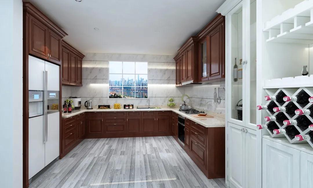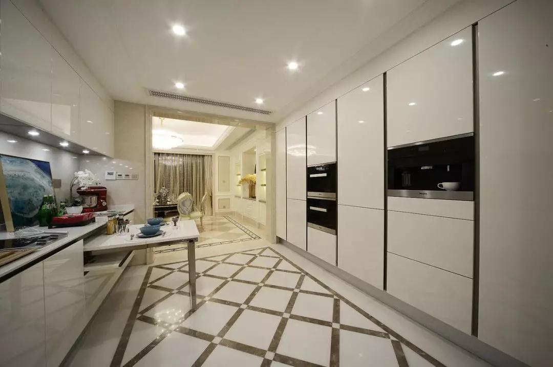 “U型”廚房的基本功能較為好用,操作流程合理,可以容納多人操作。U型廚房布局設(shè)計(jì)的櫥柜配備齊全,能充分利用空間,擴(kuò)大操作面積。