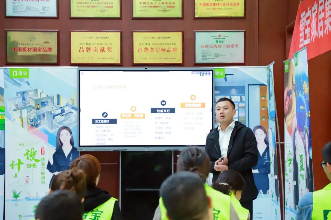 雪寶地板、木門負(fù)責(zé)人聶望武先生現(xiàn)場(chǎng)講解產(chǎn)品,由淺入深,把產(chǎn)品的核心優(yōu)勢(shì)逐一講透,讓每一位經(jīng)銷商家人對(duì)雪寶地板/木門有了更清晰的了解和認(rèn)知。