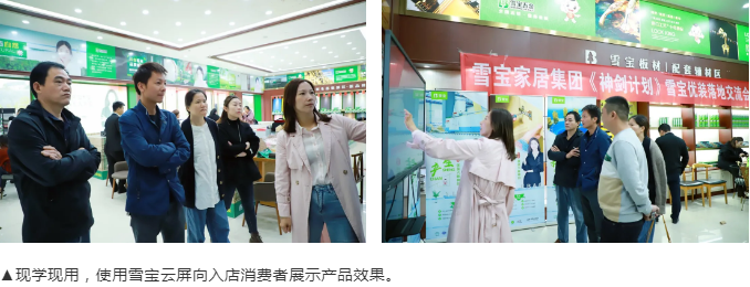 雪寶培訓(xùn)部經(jīng)理宋芳女士詳細(xì)講解門店運(yùn)營(yíng)神器“雪寶智慧云屏”,作為一款集企業(yè)展示、設(shè)計(jì)下單、內(nèi)訓(xùn)學(xué)習(xí)、遠(yuǎn)程互通等多功能于一體的高清智能多媒體一體機(jī),有助于門店多維智能展示,諸多實(shí)用功能助力賦能門店銷售業(yè)績(jī)穩(wěn)步提升。