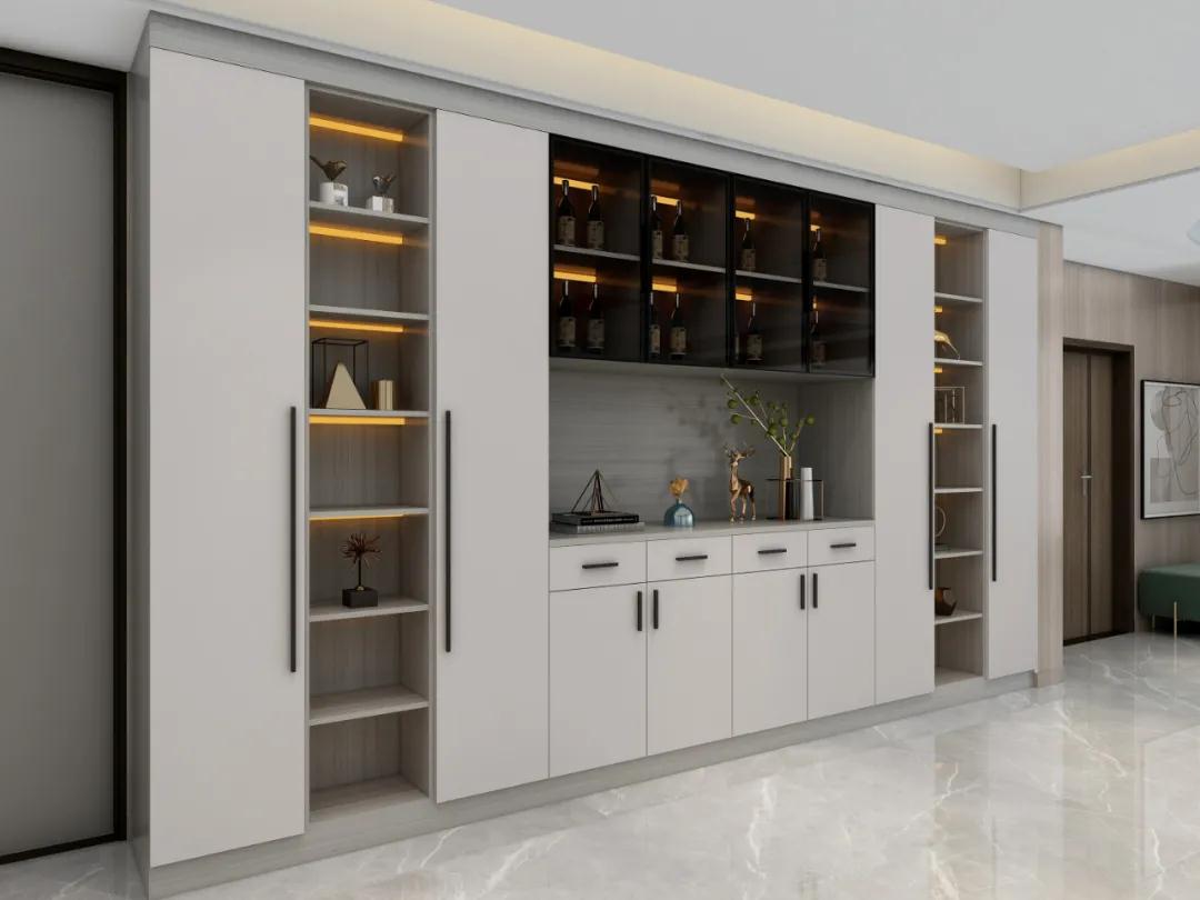 搭配建議:超高門餐邊柜可搭配開放酒格或玻璃柜門,不僅拓寬收納思路,還能把適合擺放的物件拿出來,增加品味。