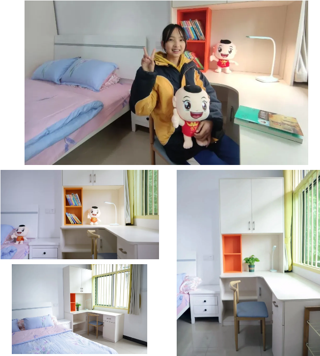 經(jīng)過(guò)徹底的全面翻新裝修后,房間墻面煥然一新,地磚鋪設(shè)整潔通透,全新的實(shí)木床旁立著由使用“雪寶板材兒童房健康板”打造而成的大衣柜和書桌柜,陽(yáng)光透過(guò)米棕色的窗簾照亮房間,溫暖明亮,整個(gè)小屋發(fā)生翻天覆地的變化。于團(tuán)團(tuán)希望小屋改造的家庭孩子悅悅而言,她開(kāi)心的坐在新書桌前笑了。