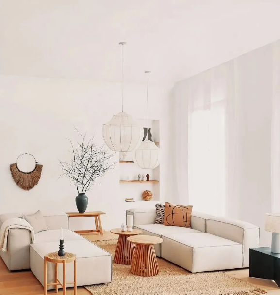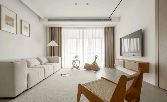 在家具材質(zhì)的選擇上,建議選用有肌理感的羊羔絨、絨布、亞麻、亞克力、原木、藤編等,自帶溫暖氣息,和諧搭配整體空間氛圍。
