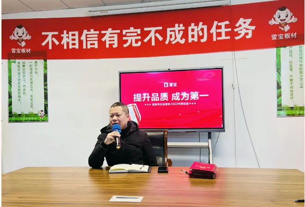 活動伊始,雪寶華北生態(tài)板營銷副總監(jiān)陳家義先生做開春第一課“狠抓實干·雪寶華北2022年整體戰(zhàn)略規(guī)劃”致詞。指出,未來市場競爭會異常激烈,環(huán)境會愈發(fā)復(fù)雜,希望全體雪寶人上下一心,以戰(zhàn)無不勝攻無不克的鐵軍精神給雪寶華北區(qū)域“2022新目標新征程”的戰(zhàn)斗譜寫新的輝煌篇章。