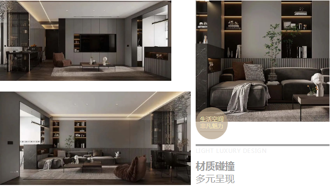 高級灰配上溫暖卡其、溫厚木飾搭配冷峻金屬,這種極致的低調(diào)與張揚,加之玩轉(zhuǎn)色彩的協(xié)奏,將空間的明媚度與活力值直線拉滿,將摩登氣質(zhì)與意式氣韻交互并序,展現(xiàn)出新都市生活空間更具包容度的非凡魅力。