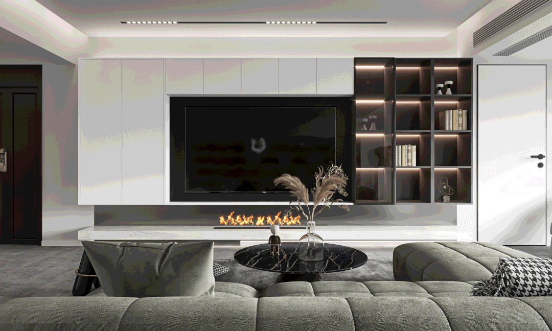在開放式的空間布局,將空間中的飾面墻、電視柜、展示柜、收納柜等進行有機串聯(lián),鋪設出連貫輕簡而自如的功能氛圍,不同的飾面表現(xiàn)模式穿插其間,塑造出維度豐富、視覺飽滿的一體化系統(tǒng),更將優(yōu)雅與沉穩(wěn)彌散進空間的每個角落。