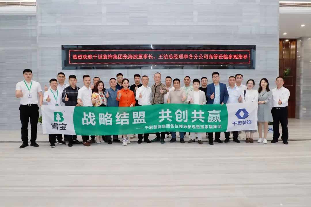 5月8日,千思裝飾集團(tuán)張海波董事長、王潔總經(jīng)理率各分公司總經(jīng)理及高管一行蒞臨雪寶家居產(chǎn)業(yè)園參觀交流,并成功簽署戰(zhàn)略結(jié)盟合作協(xié)議。