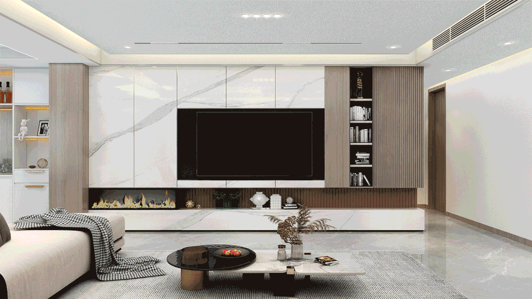 柜體開放區(qū)域,可放置工藝擺件,增添客廳藝術(shù)氛圍,也可收納日常小物,方便拿取。