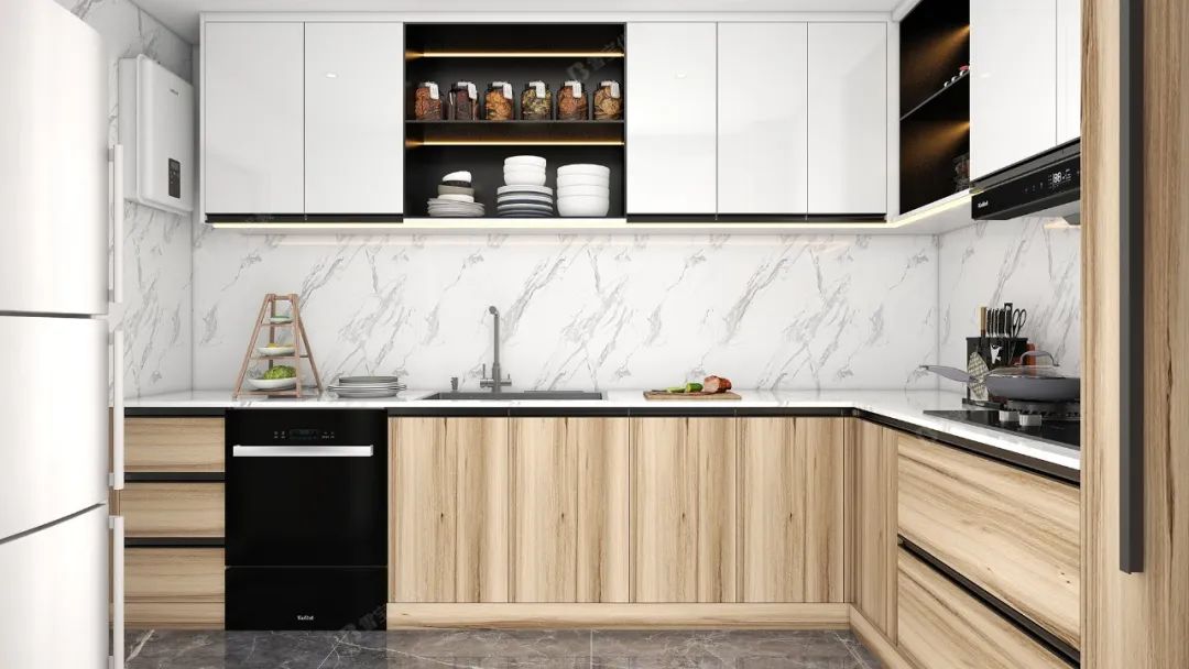 優(yōu)質(zhì)環(huán)保的材質(zhì)、柔和溫馨的燈光效果搭配簡單純粹的色彩,將廚房打造得精致美好更舒適整潔。