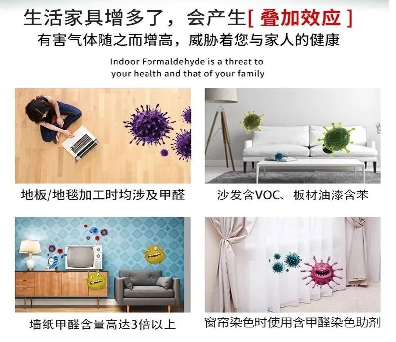 隨著大家健康意識(shí)的提高,人們?nèi)找骊P(guān)注自身的生活環(huán)境,室內(nèi)空氣質(zhì)量成為很多人關(guān)注的熱點(diǎn)。而說起室內(nèi)空氣的污染,人們往往會(huì)聯(lián)想到甲醛。眾所周知,甲醛是一種致癌物,輕則讓人流淚、咽痛各種不適,重則致癌。但就室內(nèi)污染而言,不能只關(guān)注甲醛,而忽略其它污染物的危害。