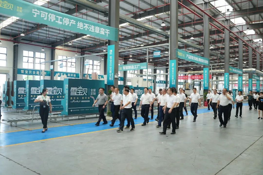 在雪寶現(xiàn)代化工廠觀摩中,市區(qū)領(lǐng)導(dǎo)一行通過(guò)儀器檢測(cè)體驗(yàn)了能釋放負(fù)離子的森林有氧板,了解了雪寶智能制造加工生產(chǎn)的標(biāo)準(zhǔn)作業(yè)工作流程,并且就如何把板材精準(zhǔn)無(wú)誤變成板件,最后成為家具柜的工藝全流程聽(tīng)取了匯報(bào)講解。
