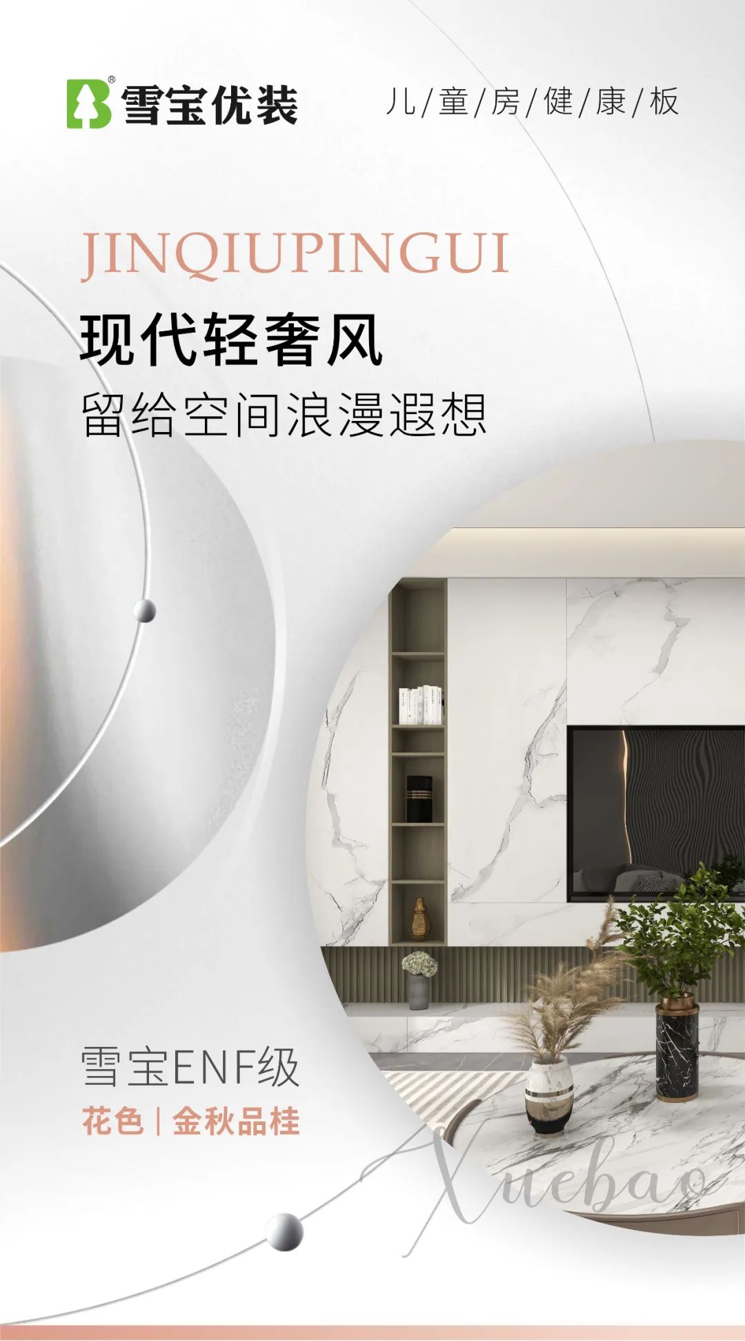 雪寶ENF級(jí)板材“金秋品桂”,現(xiàn)代輕奢風(fēng),留給空間浪漫遐想