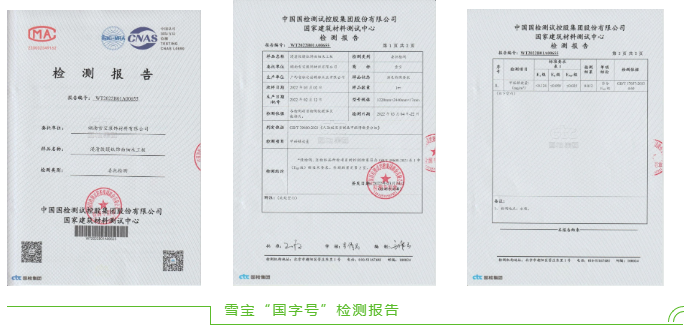 雪寶板材系列產(chǎn)品的甲醛釋放數(shù)值遠優(yōu)于E0級,甚至比新國標ENF級要求的甲醛釋放量≤0.025mg/m³更低。這源于中國國檢測試控股集團的國家建筑材料測試中心檢測出具的檢測報告就是最有力的證明。消費者在購買ENF級板材時,務(wù)必認準“國字號”ENF級檢測報告。