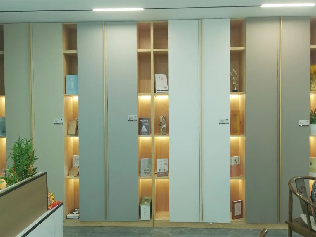 通過功能五金、燈光變化等方式,動靜結合,讓產品自己能“說話”,讓客戶跟家具溝通,增強互動和反饋?偛枯敵鰣鼍盎墓耋w解決方案,提供高效快搭的全屋定制裝修風格選擇及全房空間全景體驗,讓消費者提前享受到裝修愛家的喜悅感和幸福感。