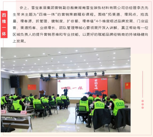 本次特訓(xùn)營活動,旨在夯實基礎(chǔ)、深練內(nèi)功,錘煉過硬本領(lǐng),打造金牌之師的作戰(zhàn)營銷團隊,從而更好的為廣大經(jīng)銷商和消費者提供系統(tǒng)化專業(yè)化的品牌服務(wù)。雪寶家居集團華南、華北兩大營銷中心的銷售精英們匯聚一堂,與部分企業(yè)中高層一同參與本次“春雷行動”培訓(xùn),卯足干勁,以奮進之姿開啟2023年的新征程。