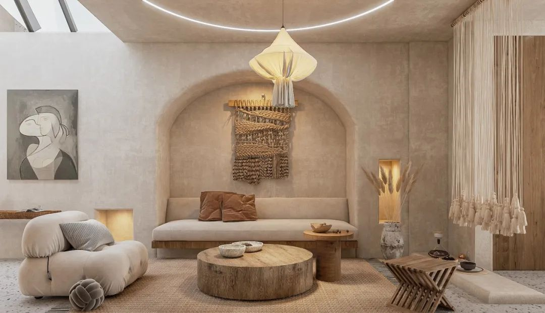 侘寂風(fēng)會(huì)模擬自然材質(zhì),自然材質(zhì)既有一定的肌理感,又有獨(dú)特的紋理質(zhì)感,帶來返璞歸真的親切感。