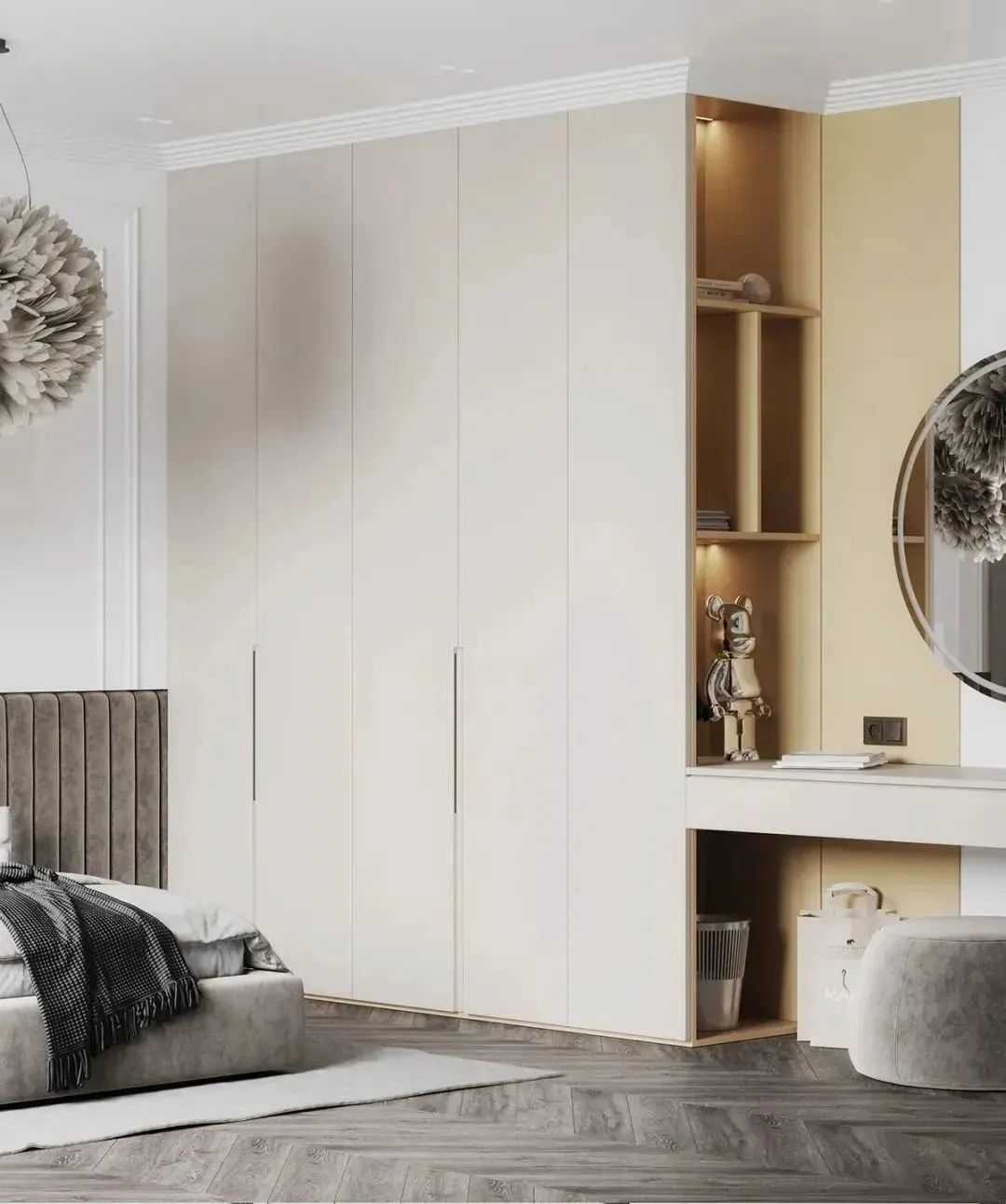 垂直挺拔的超高柜門,給人第一感覺像是抽了縫的墻面,這樣的感覺更有層次感和流動性,讓整個柜門看上去不僅簡潔靈動還能增強空間的整體性,統(tǒng)一但不失格調(diào)。