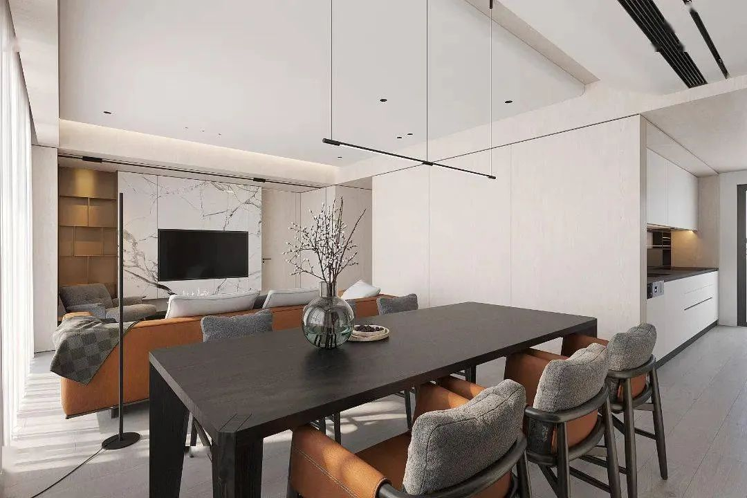 突破傳統(tǒng)的獨(dú)立格局,將三者串聯(lián)在一起,融合統(tǒng)一的設(shè)計(jì),讓空間更為協(xié)調(diào),建立起統(tǒng)一的空間視覺(jué)架構(gòu)。