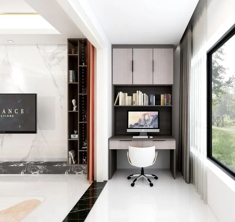 書(shū)柜的組成部分是由書(shū)桌+書(shū)架組成的,一般小戶(hù)型的空間有限,書(shū)房幾乎沒(méi)有,為了能夠滿(mǎn)足于書(shū)房的設(shè)計(jì),我們把陽(yáng)臺(tái)的空間利用起來(lái)定制成一個(gè)書(shū)柜。
