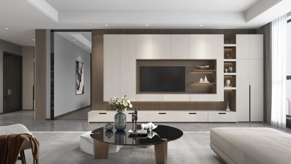 C字型電視柜也叫半包圍電視柜,增加收納量的同時讓空間更有設(shè)計感。適用于進(jìn)深和面寬較寬裕的戶型;以及對柜體設(shè)計感有追求的人群。