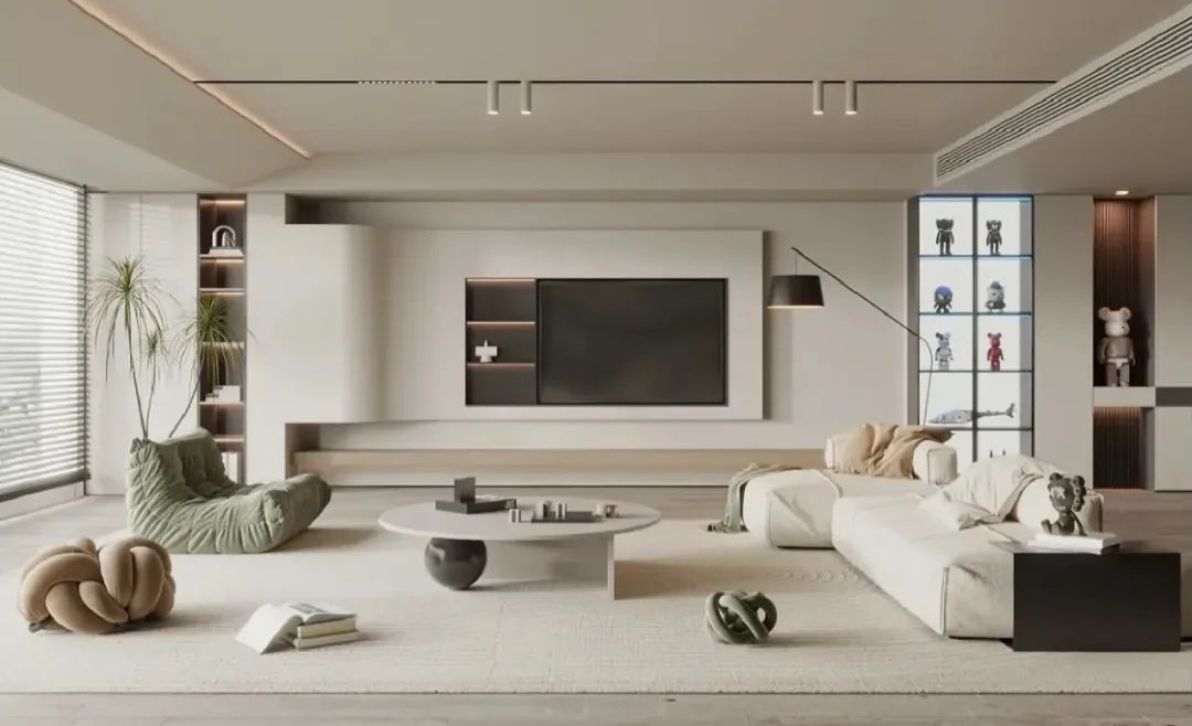 除了常規(guī)的在電視墻、過(guò)道、沙發(fā)背景這些地方,設(shè)置整面墻的通頂收納柜進(jìn)行集中收納之外,也可以多做功能性的設(shè)計(jì),比如榻榻米、壁龕、地臺(tái)、卡座等,盡可能把每一寸空間都利用起來(lái)。