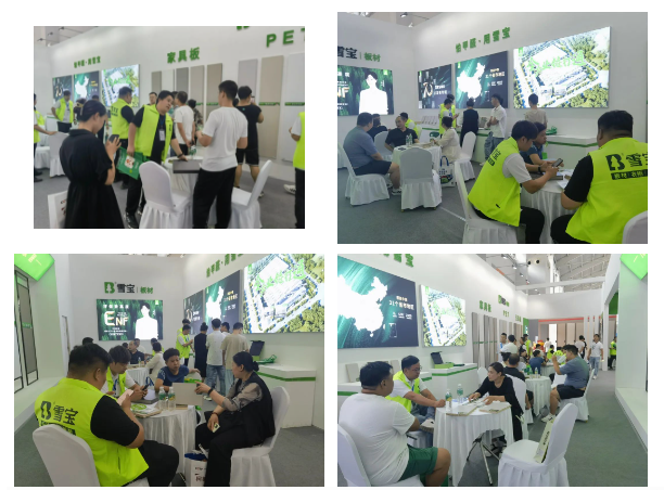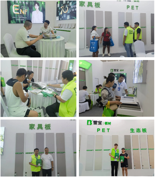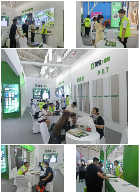 此次展會,前來雪寶板材展區(qū)咨詢的客戶絡(luò)繹不絕,現(xiàn)場人聲鼎沸,熱鬧非凡。雪寶品牌華北營銷中心的精英們在陳總的帶領(lǐng)下,火力全開,全體人員都展現(xiàn)出信心百倍與無懈可擊的氣勢,全力以赴堅決不錯過每一個客戶,用專業(yè)技能服務(wù)和解決客戶疑難點。通過精心設(shè)計,雪寶展館奪目大氣,成為會場矚目的焦點。雪寶生態(tài)板、家具板、配套五金、主流柜門等系列產(chǎn)品悉數(shù)亮相,同時雪寶ENF級系列產(chǎn)品也得到眾多客戶的選擇和信賴。