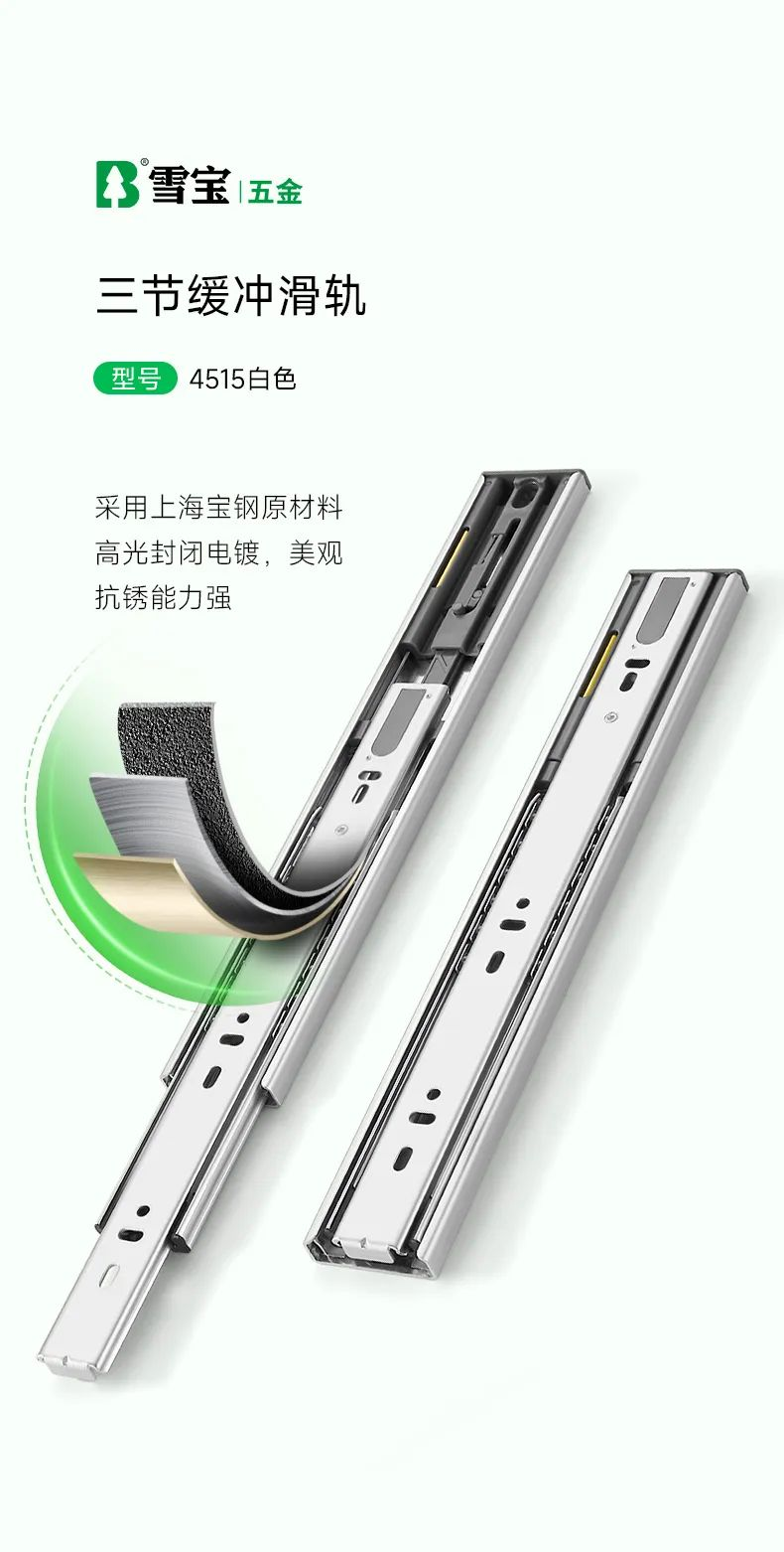 雪寶4515白色緩沖(反彈)三節(jié)軌:靜默守護溫柔時光