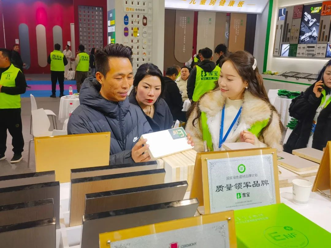 作為中西部家居類展會的品牌旗艦展會,雪寶品牌立足“零醛環(huán)保、健康品質(zhì)、功能顏值”的根本,向廣大客戶和消費者全面展示“兒童房健康板”的品牌魅力和產(chǎn)品實力。雪寶1C-002展位用醒目大氣的高顏值、卓越領(lǐng)先的產(chǎn)品力、配套齊全的服務(wù)力吸引廣大賓客朋友走進展位現(xiàn)場,深入了解板材生產(chǎn)工藝以及展館內(nèi)陳列的優(yōu)質(zhì)產(chǎn)品,以及進行詳細溝通和洽談合作事宜。