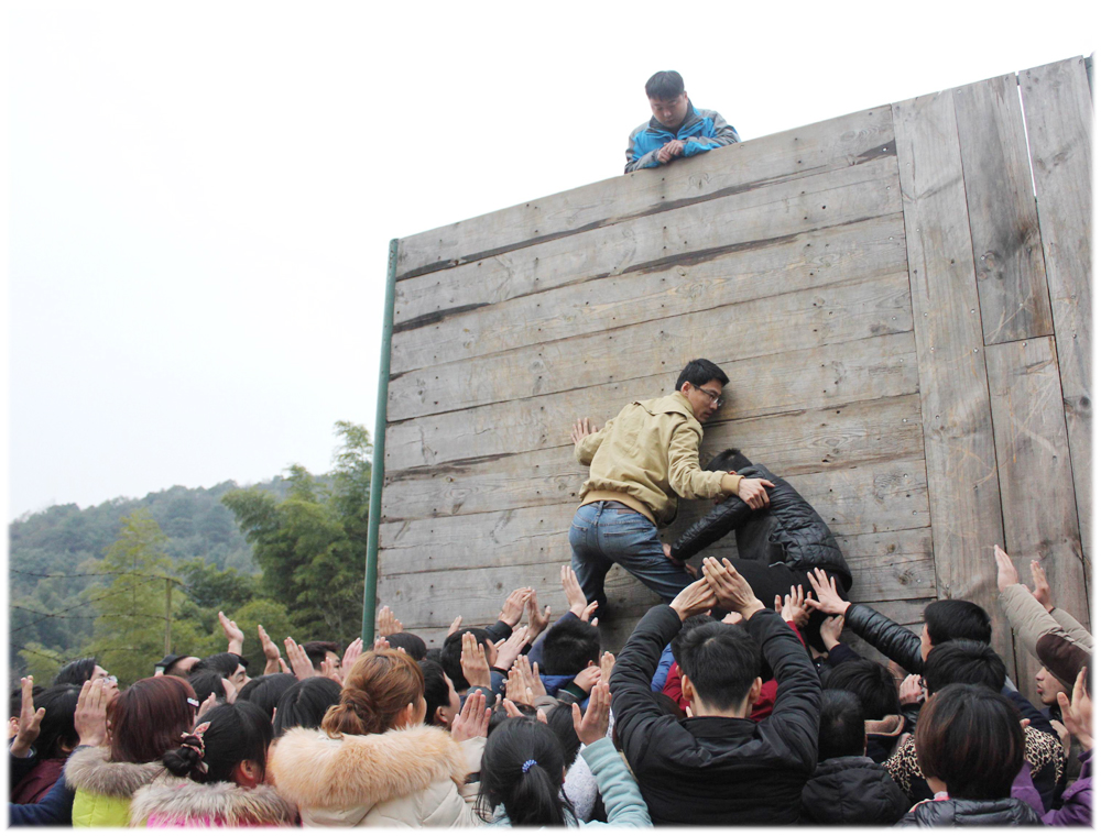 此次培訓(xùn)現(xiàn)場將學(xué)員分成了四大團(tuán)隊——“雄鷹隊”、“飛鷹隊”、“飛虎隊”、“超越隊”,通過接受各項挑戰(zhàn),來激發(fā)學(xué)員各項能力。此次設(shè)置的挑戰(zhàn)有:“擂鼓擊球”、“高空斷橋”、“急速60秒”、“穿越高墻”。參訓(xùn)過程中,各團(tuán)隊成員都認(rèn)真聆聽、積極參與、踴躍發(fā)散思維,并在游戲環(huán)節(jié)積極投入,爭取為團(tuán)隊獲得更多的分?jǐn)?shù)。