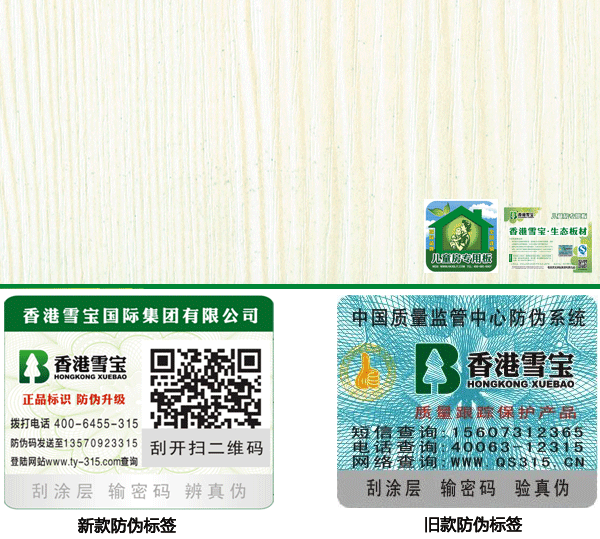 2)防偽查詢:每張雪寶板材都會有防偽標(biāo)簽,每串防偽碼都是唯一;