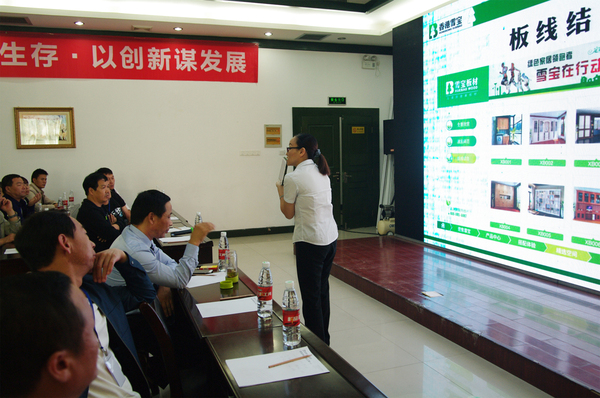 雪寶品牌在板材行業(yè)的穩(wěn)步發(fā)展,離不開緊跟市場步伐和對產品品質及創(chuàng)新的執(zhí)著追求。雪寶華北營銷總監(jiān)凌總就本次“三新”發(fā)布會致辭,凌總在發(fā)布會中對品牌未來的發(fā)展規(guī)劃做了全面的闡述,并對西北地區(qū)的發(fā)展和營銷政策進行了詳細的講解,同時對劉總舉辦的這次會議給予了極高的肯定和贊譽。